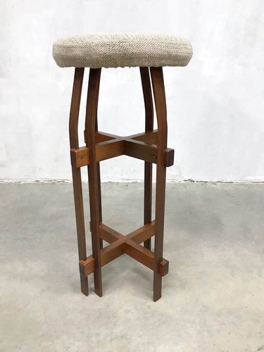 Brutalist Wood And Wool Bar Stools 1980s Set Of 2 For Sale At Pamono